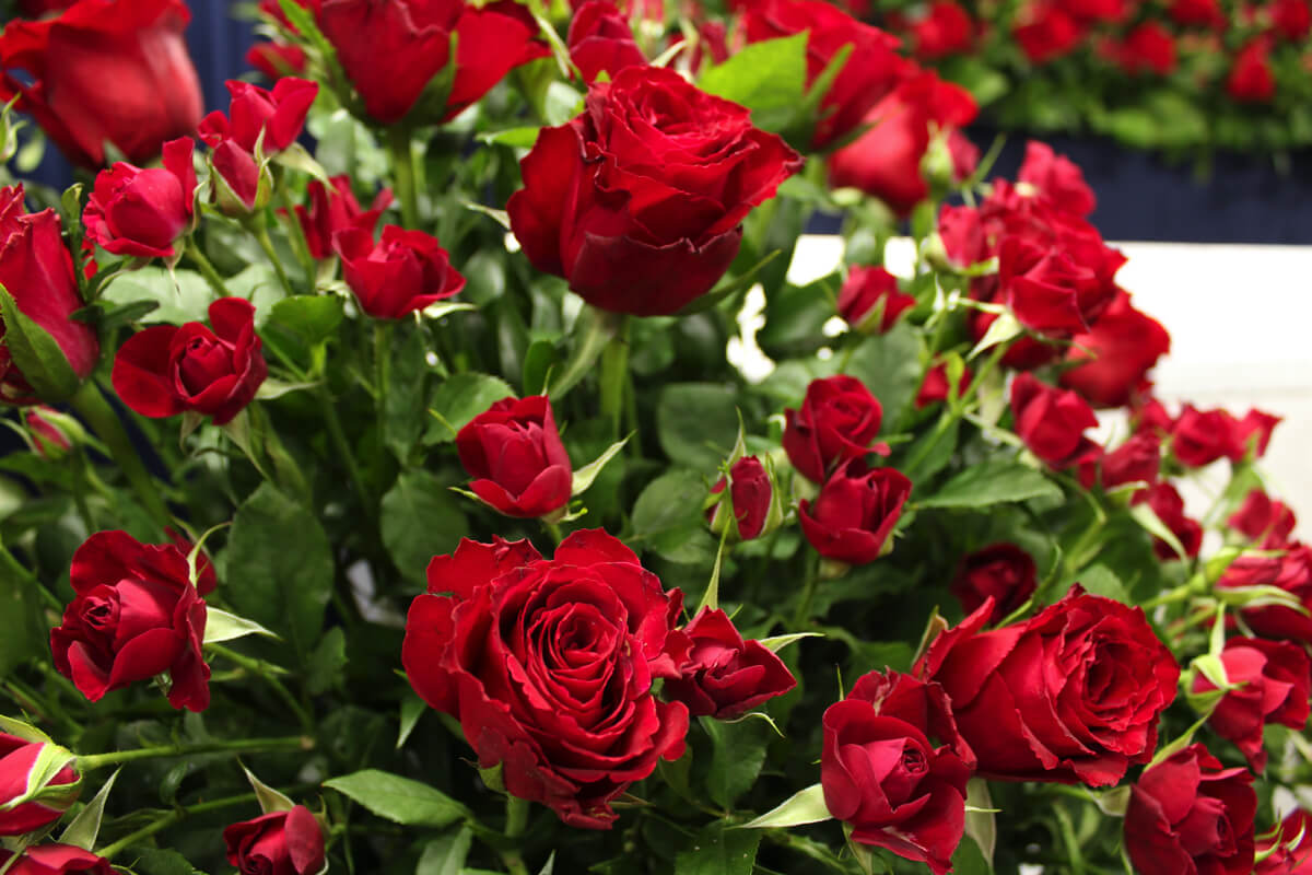 バラは愛を象徴する花として知られており、華やかな花姿や種類の多さから、アレンジメントやブーケなどにも多く使われています。色により花言葉は異なり、赤いバラの花言葉は 「情熱」「あなたを愛します」「愛」「美」などです。