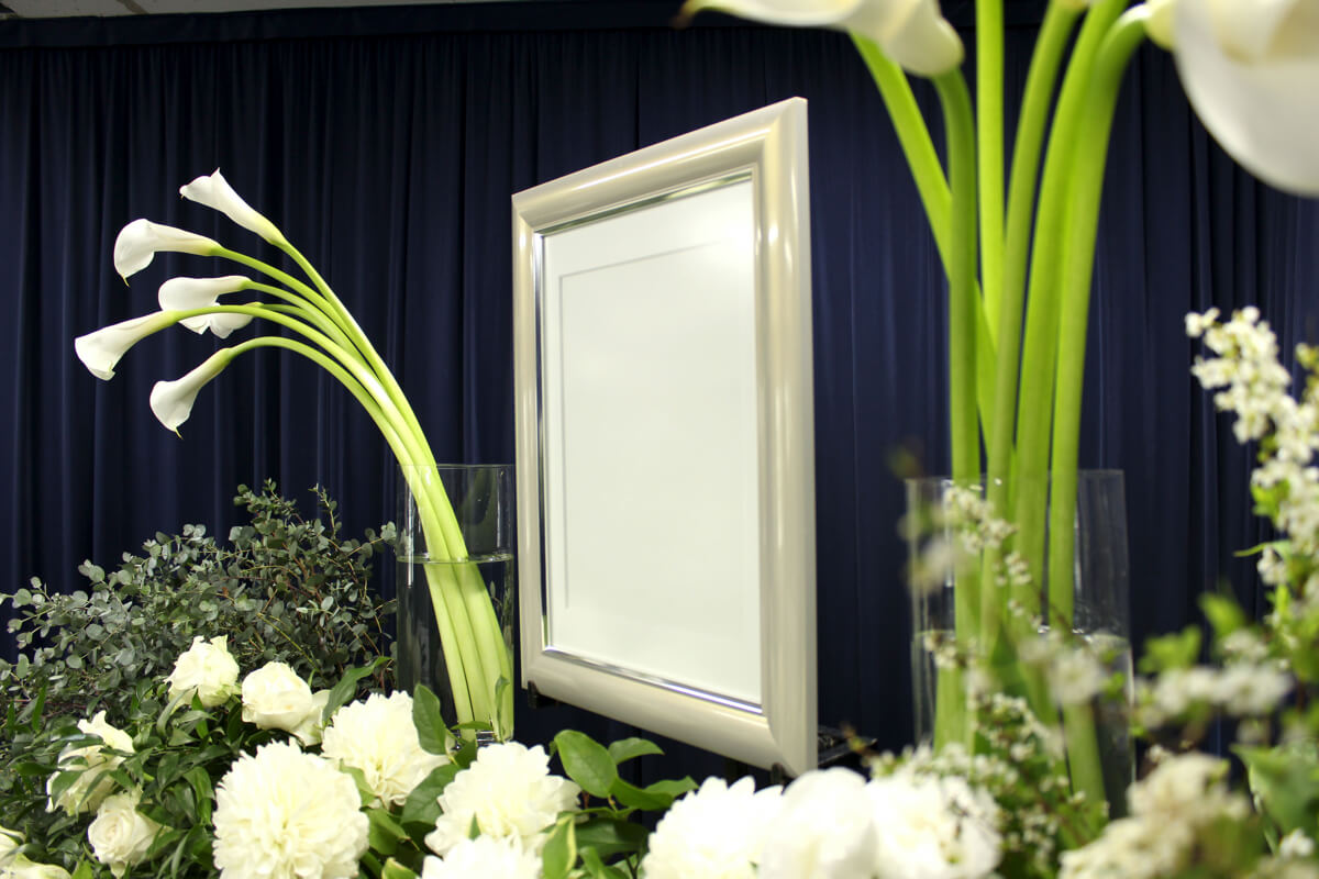 季節のお花やグリーン類を使い、季節ごとの彩りを表現した生花祭壇です。 あえてご遺影装飾のみで完成形としたことにより、さまざまなシーンでお飾りいただけるようにしました。こちらの祭壇は季節のお花を使用して表現しますので、ご希望のお花があればご相談ください。