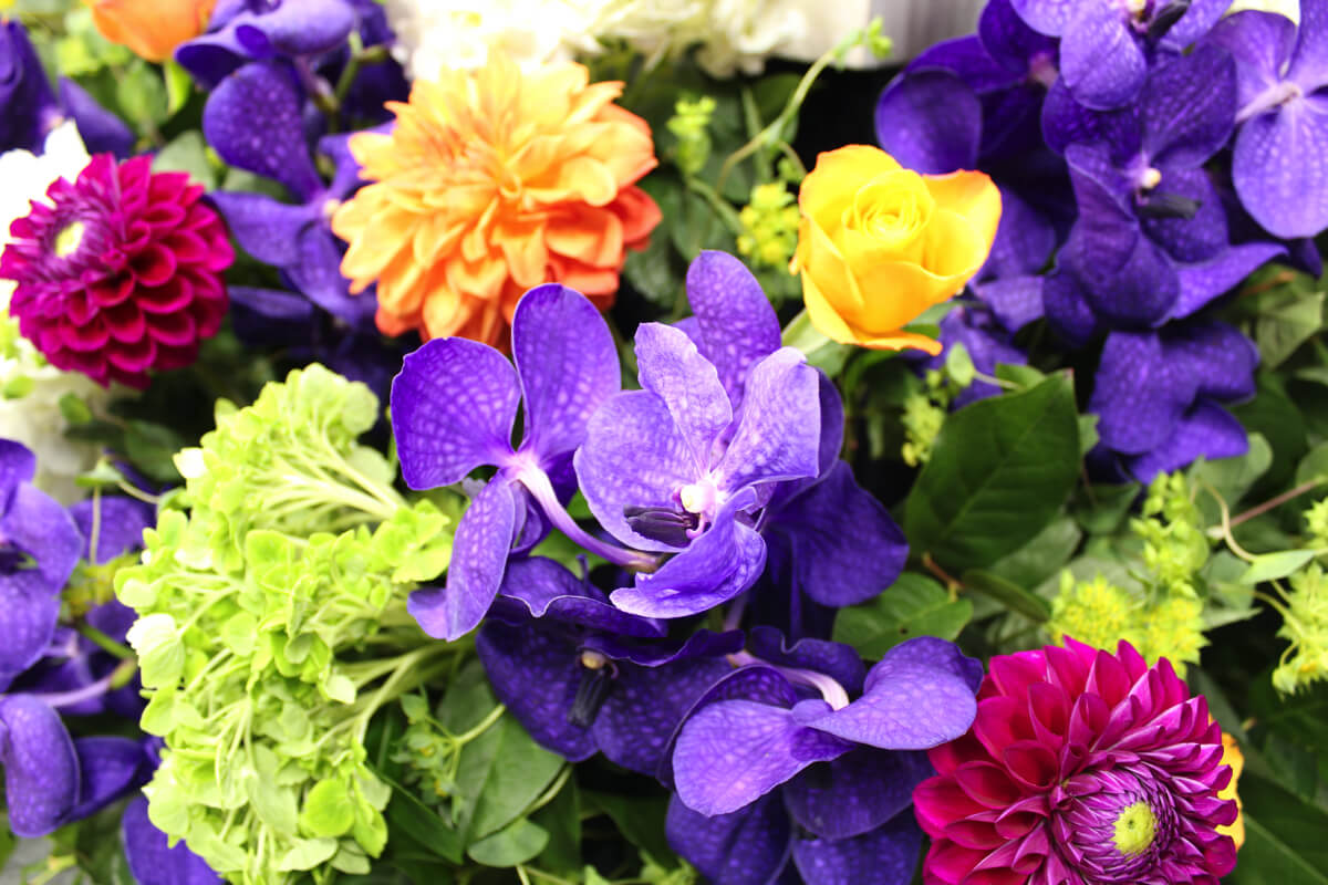 | 使用花材 | バンダ(周年/冬季は品薄になります) ダリア(周年) アジサイ(5〜6月/他の花材を使用する場合があります) |