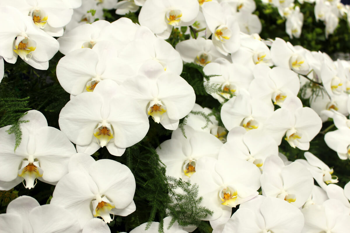 多くの人がイメージする胡蝶蘭の白い花は上品で清潔感があり、どんなシーンにも適しており、贈り物としてもコチョウランの中では白が一番多く選ばれているそうです。現代では温室の利用により、年中花を咲かせることができます。