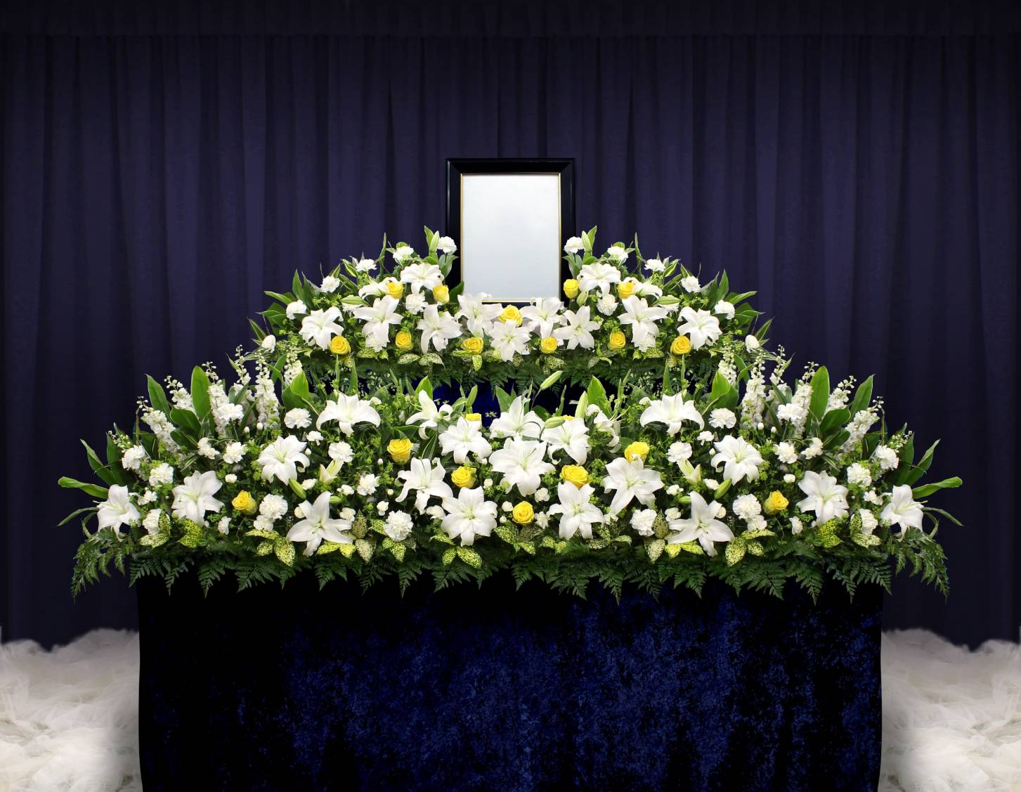 大輪のユリを全面に生かしたデザインの生花祭壇です。